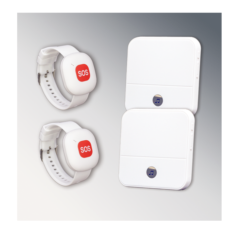 Kit de timbre inalámbrico 60 campanillas de largo alcance 2 receptores 1 botón SOS Llamador de muñeca impermeable-Uso cómodo para seguridad